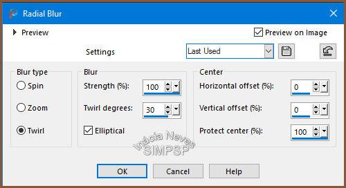 réglages flou radial