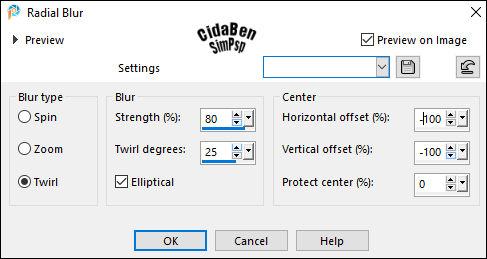 4 - réglages, flou radial